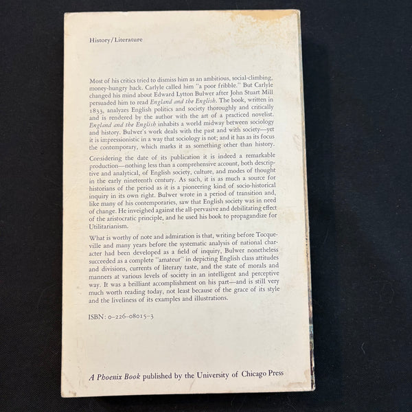 BOOK: Edward Lytton Bulwer, "England and the English" (University of Chicago Press, 1970)