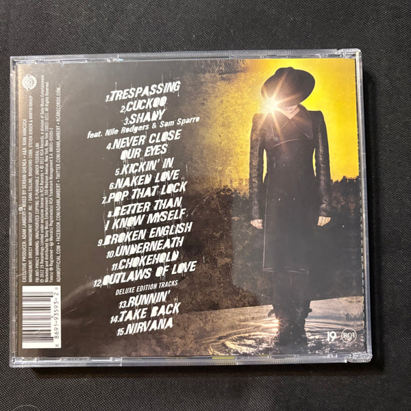 ARTIST: Adam Lambert TITLE: Trespassing LABEL: 19/RCA YEAR: 2012 FORMAT: CD CONDITION: used, in very good condition, comes in jewel case with all inserts