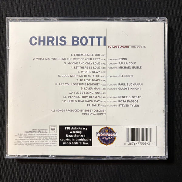 ARTIST: Chris Botti TITLE: To Love Again: The Duets LABEL: Columbia YEAR: 2005 FORMAT: CD CONDITION: used, in very good condition, comes in jewel case with all inserts.
