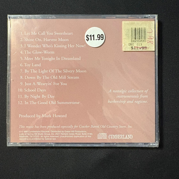 Produced for the Cracker Barrel chain of stores and restaurants, this is a collection of nostalgic barbershop and ragtime music featuring guitar, mandolin, piano, clarinet, vibes, rhythm and strings.