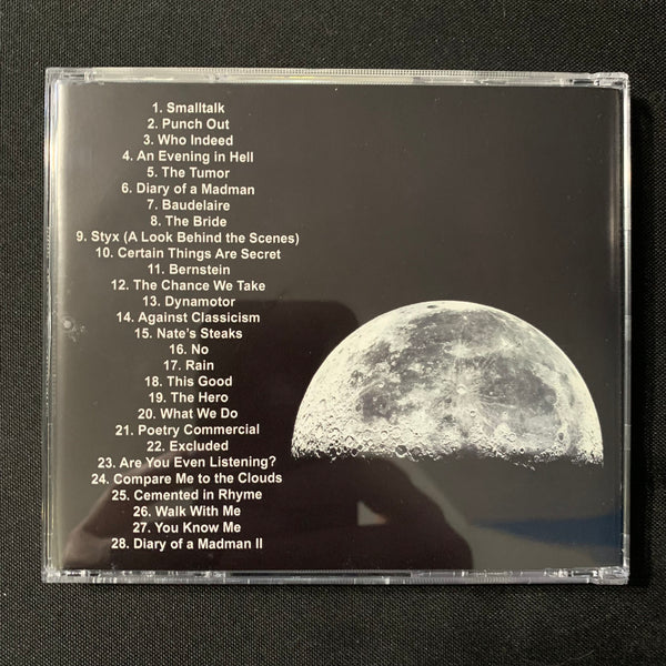TRACKS: Smalltalk, Punch Out, Who Indeed, An Evening In Hell, The Tumor, Diary of a Madman, Baudelaire, The Bride, Styx (A Look Behind the Scenes), Certain Things Are Secret, Bernstein, The Chance We Take, Dynamotor, Against Classicism, Nate's Steaks, No, Rain, This Good, The Hero, What We Do, Poetry Commercial, Excluded, Are You Even Listening?, Compare Me To the Clouds, Cemented In Rhyme, Walk With Me, You Know Me, Diary of a Madman II..