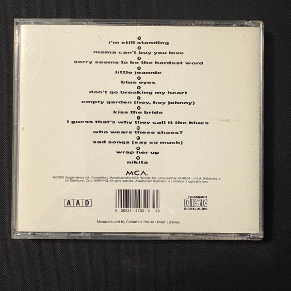ARTIST: Elton John TITLE: Greatest Hits 1976-1986 LABEL: MCA YEAR: 1992 FORMAT: CD CONDITION: used, in very good condition, comes in jewel case with all inserts. Light marks on CD surface do not affect play.