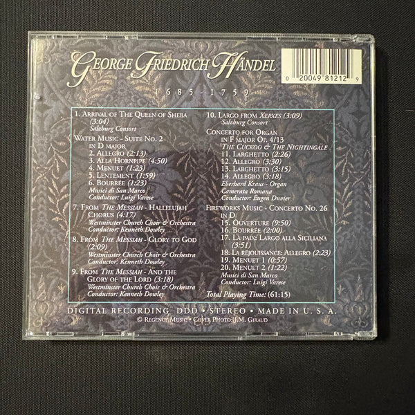 ARTIST: George Friedrich Handel TITLE: Masterpiece Collection LABEL: Regency Music YEAR: not listed FORMAT: CD CONDITION: used, in very good condition, comes in jewel case with all inserts