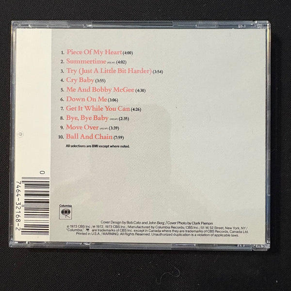 ARTIST: Janis Joplin TITLE: Greatest Hits LABEL: Columbia YEAR: 1973 FORMAT: CD CONDITION: used, in very good condition, comes in jewel case with all inserts. Light marks on CD surface do not affect play.