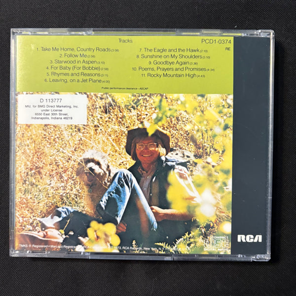 ARTIST: John Denver TITLE: Greatest Hits LABEL: RCA YEAR: 1973 FORMAT: CD CONDITION: used, in very good condition, comes in jewel case with all inserts. 1-2 faint marks on CD surface do not affect play.