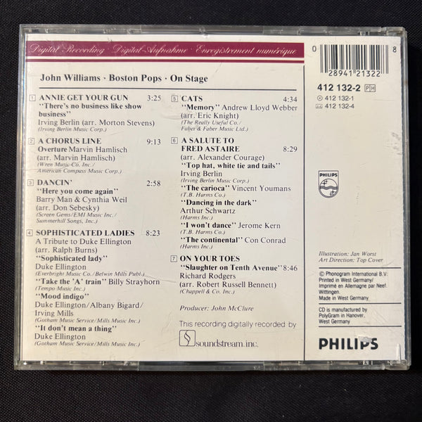 ARTIST: Boston Pops; John Williams TITLE: On Stage LABEL: Philips YEAR: 1984 FORMAT: CD CONDITION: used, in very good condition, comes in jewel case with all inserts. A few light marks on CD surface do not affect play.