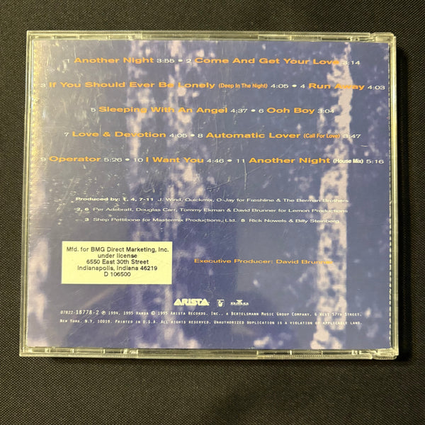 ARTIST: Real McCoy TITLE: Another Night LABEL: Arista YEAR: 1995 FORMAT: CD CONDITION: used, in very good condition, comes in jewel case with all inserts. A few light marks on CD surface do not affect play.