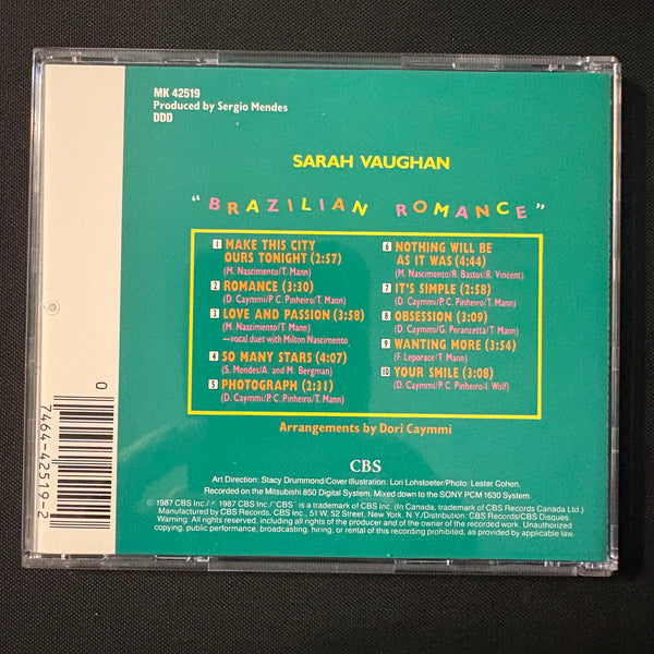 ARTIST: Sarah Vaughan TITLE: Brazilian Romance LABEL: CBS YEAR: 1987 FORMAT: CD CONDITION: used, in very good condition, comes in jewel case with all inserts