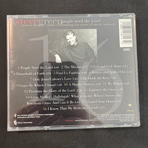 ARTIST: Steve Green TITLE: People Need the Lord: Sixteen Favorite Songs Celebrating Ten Years of Music Ministry LABEL: Sparrow YEAR: 1994 FORMAT: CD CONDITION: used, in very good condition, comes in jewel case with all inserts