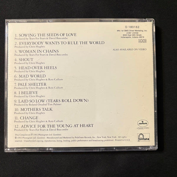 ARTIST: Tears For Fears TITLE: Tears Roll Down (Greatest Hits 82-92) LABEL: Mercury/Fontana YEAR: 1992 FORMAT: CD CONDITION: used, in very good condition, comes in jewel case with all inserts