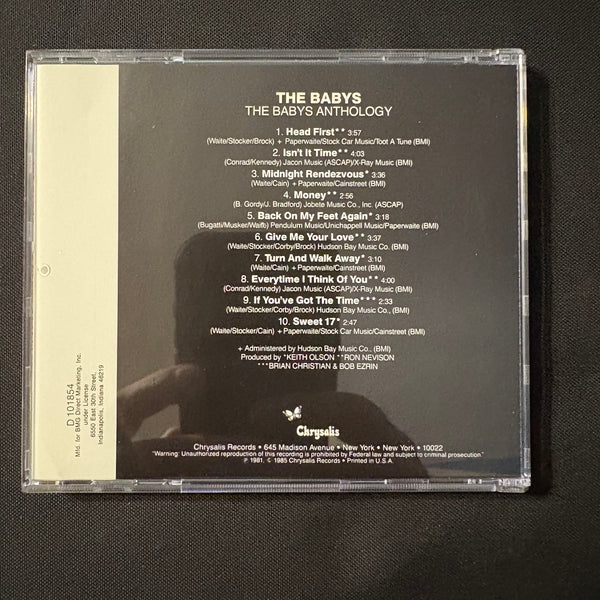 ARTIST: The Babys TITLE: Anthology LABEL: Chrysalis YEAR: 1985 FORMAT: CD CONDITION: used, in very good condition, comes in jewel case with all inserts