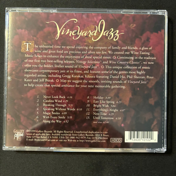 ARTIST: various TITLE: Vineyard Jazz LABEL: Gallery YEAR: 1999 FORMAT: CD CONDITION: used, in very good condition, comes in jewel case with all inserts